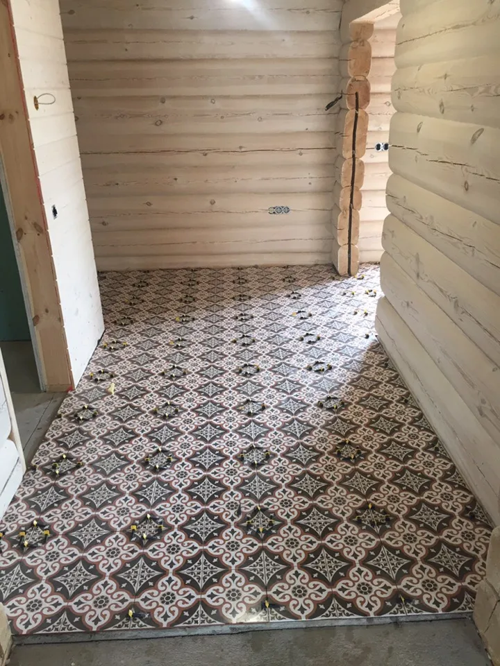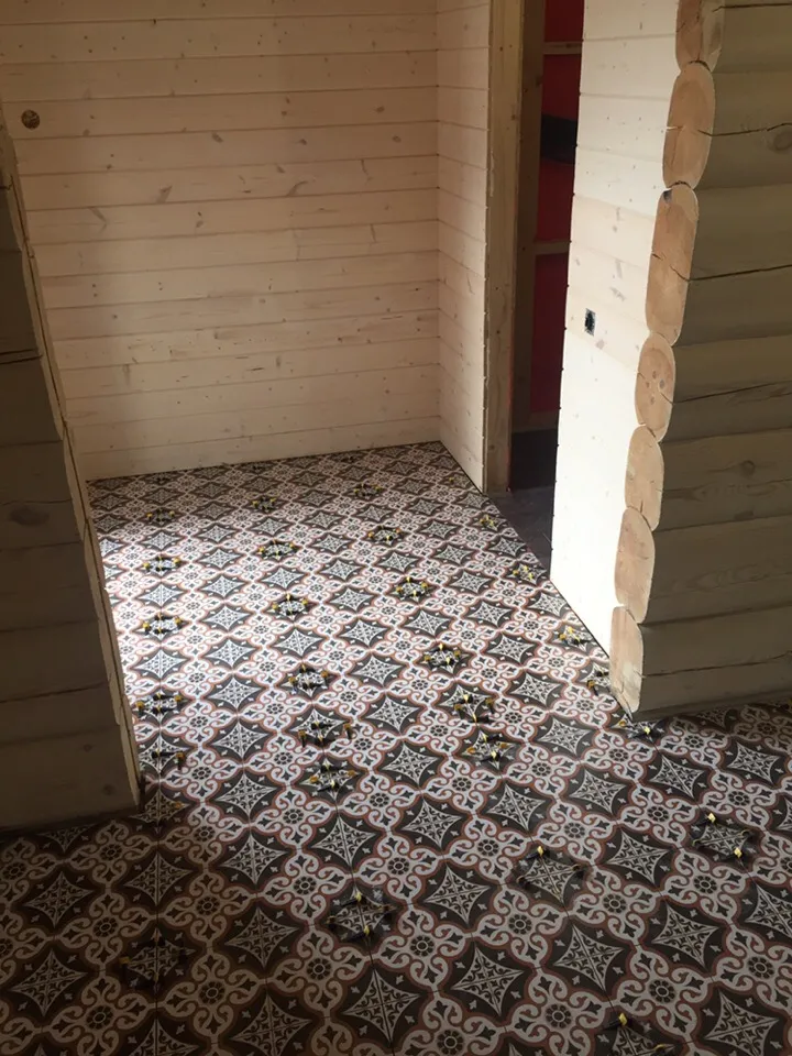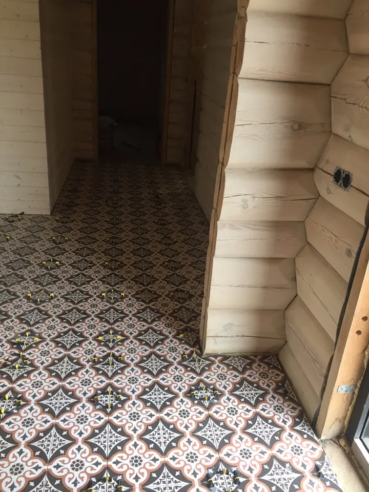 Укладка напольной плитки в деревянном доме под Выборгом (Выборгский район Ленобласти)